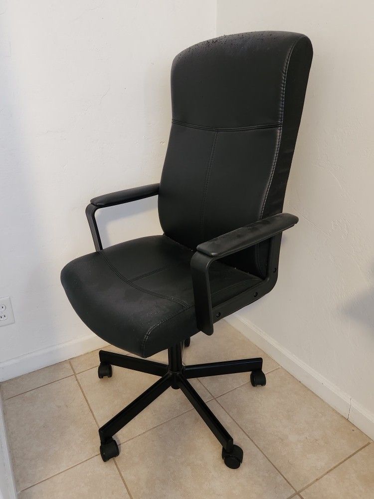 a nice black desk chair with wheels, material a little scuffed but nothing major -I originally bought it for $120 from Ikea -Chair measurements are in attached screenshots