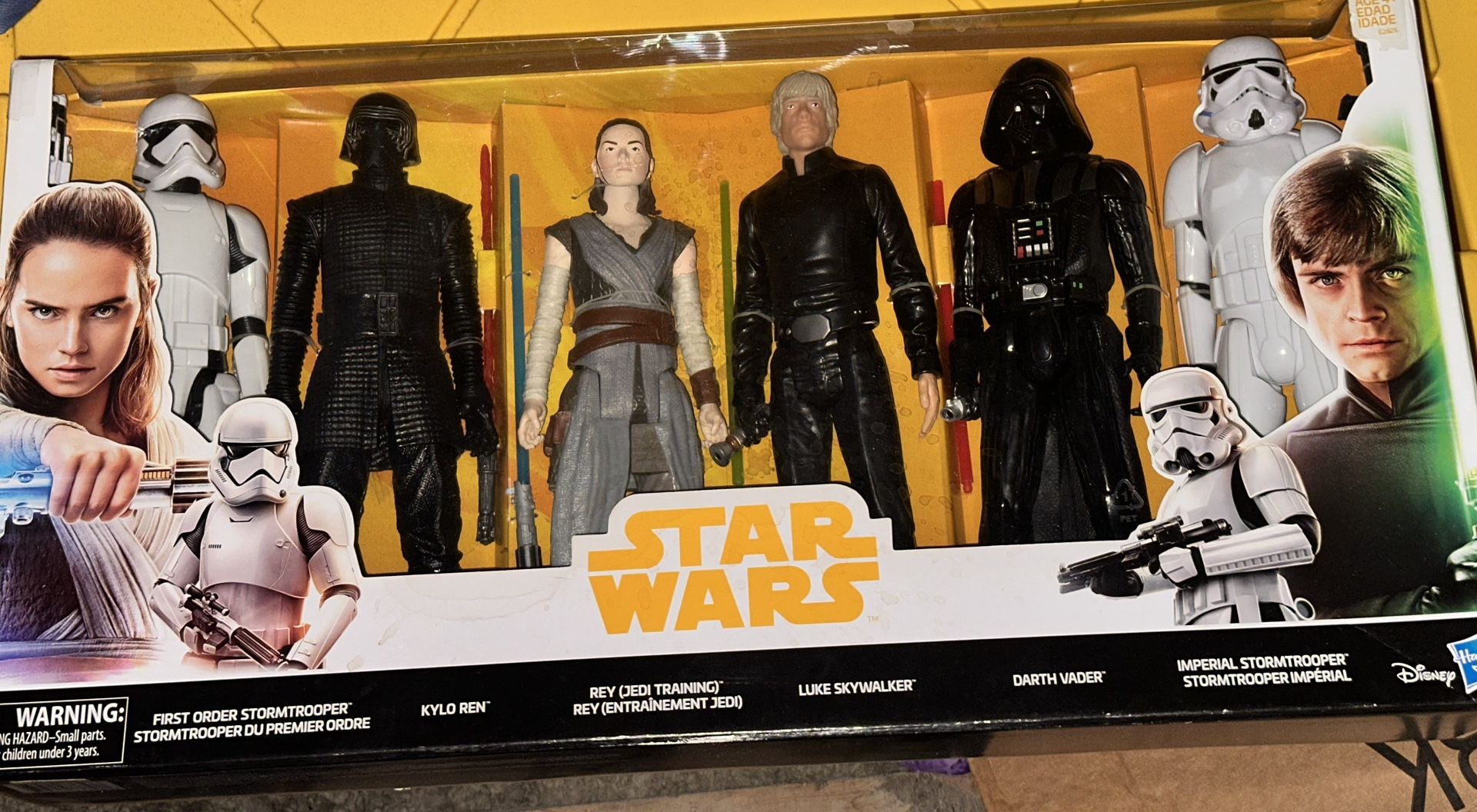 Includes Rey, Kylo Ren, Luke Skywalker, Darth Vader, and Stormtroopers. Hasbro brand. Brand New not open. Asking $100