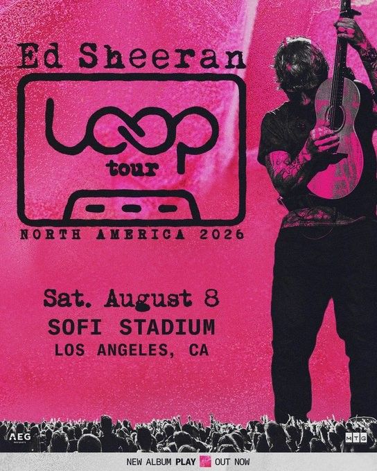Ed Sheeran Loop Tour 2 Tickets SOLD TOGETHER General Admission Saturday Aug 8th 2026 5:30pm π1001 Stadium Dr, Inglewood, CA 90301 ***TICKET MASTER TRANSFER PRICE FIRM***