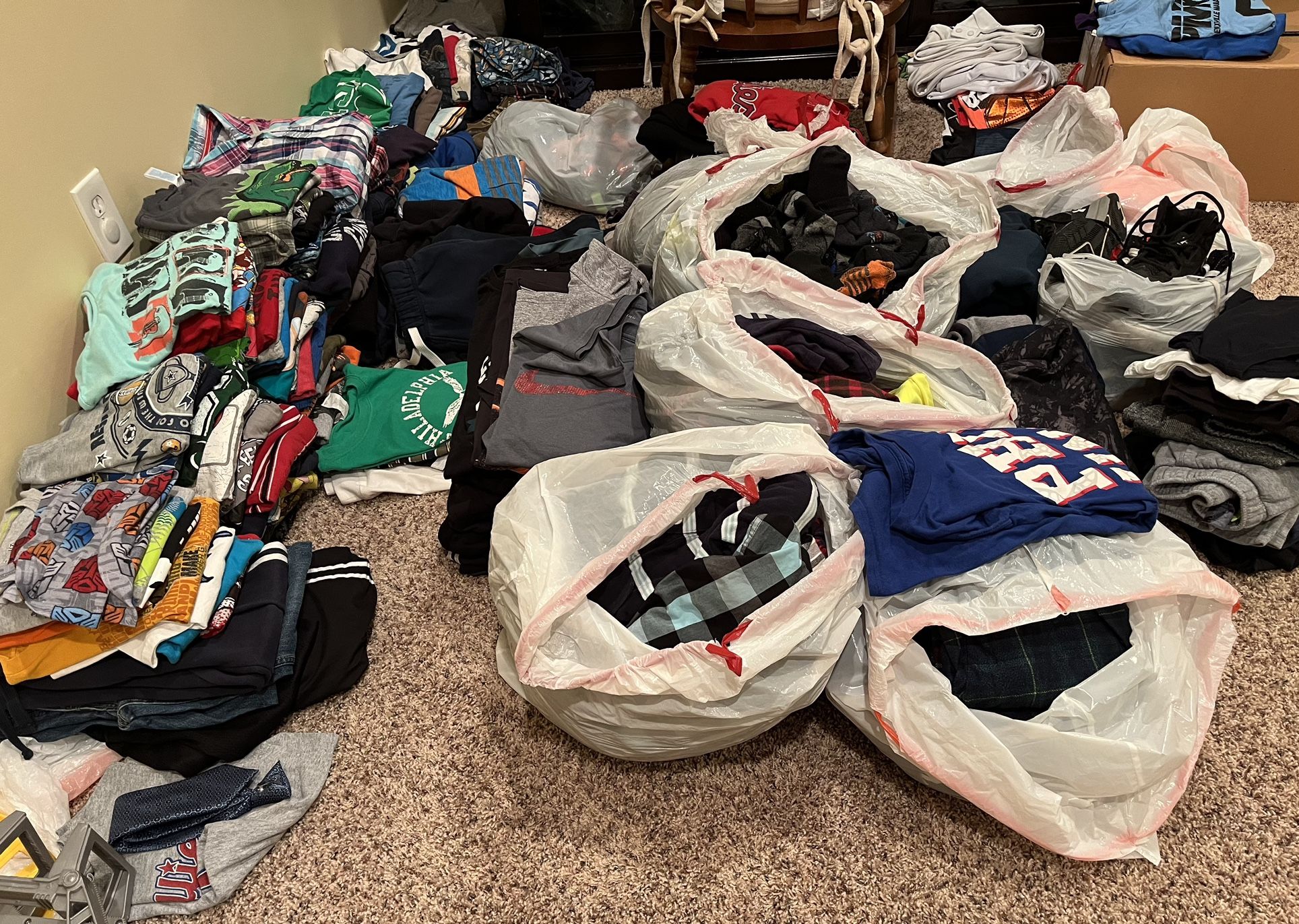 Lots of boys clothes. Closet cleaning purge. Items anywhere from $2-6. All seasons from tees to long sleeve, shorts, sweaters, pants, sweatpants and more! Let me know what you’re interested in and I’ll summarize what I have. Welcome to porch preview too! Pet free and smoke free home.