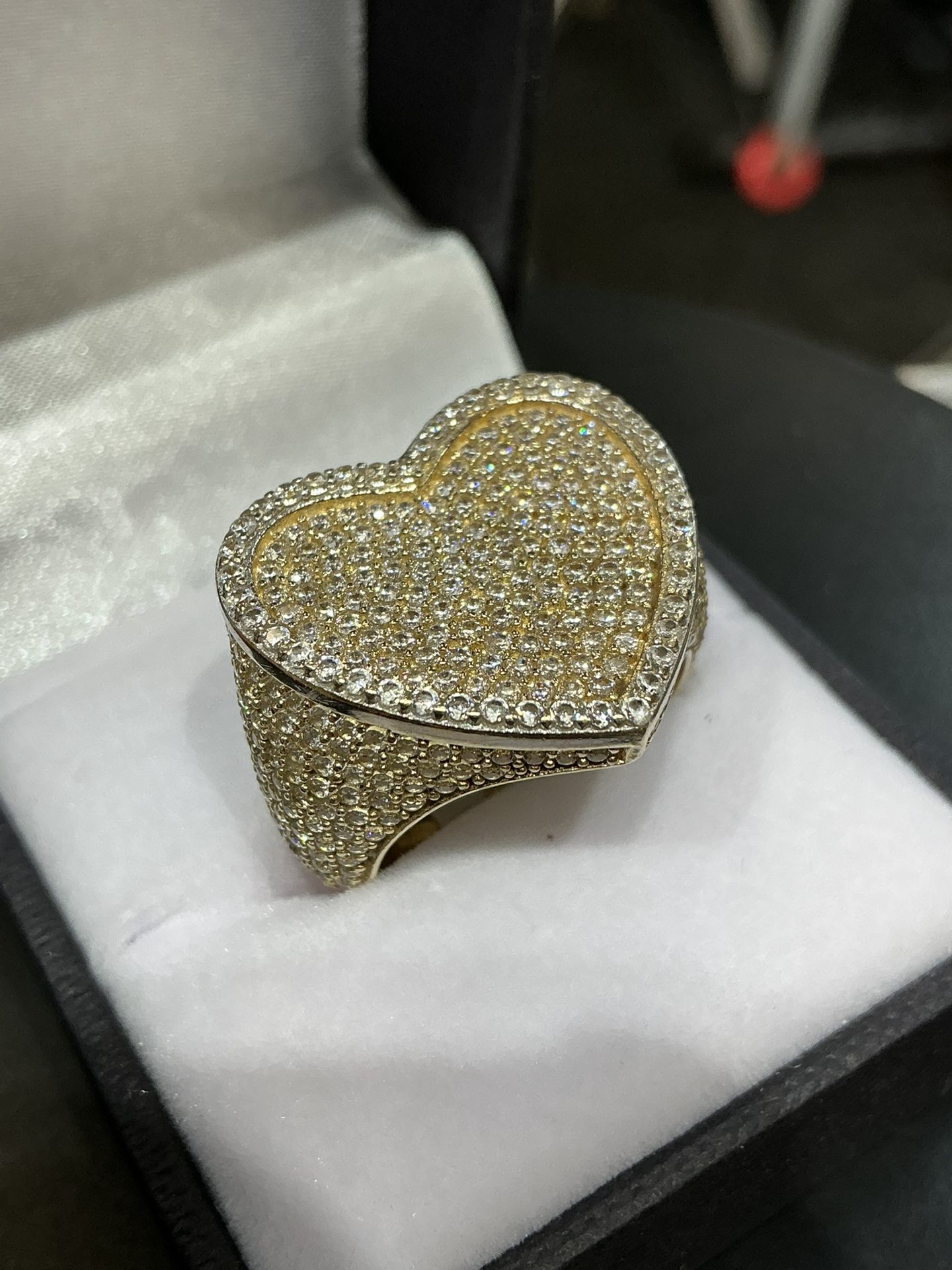 14k Gold Heart Ring With Cubic Zirconia Stones. Missing Stones At Bottom Of Ring