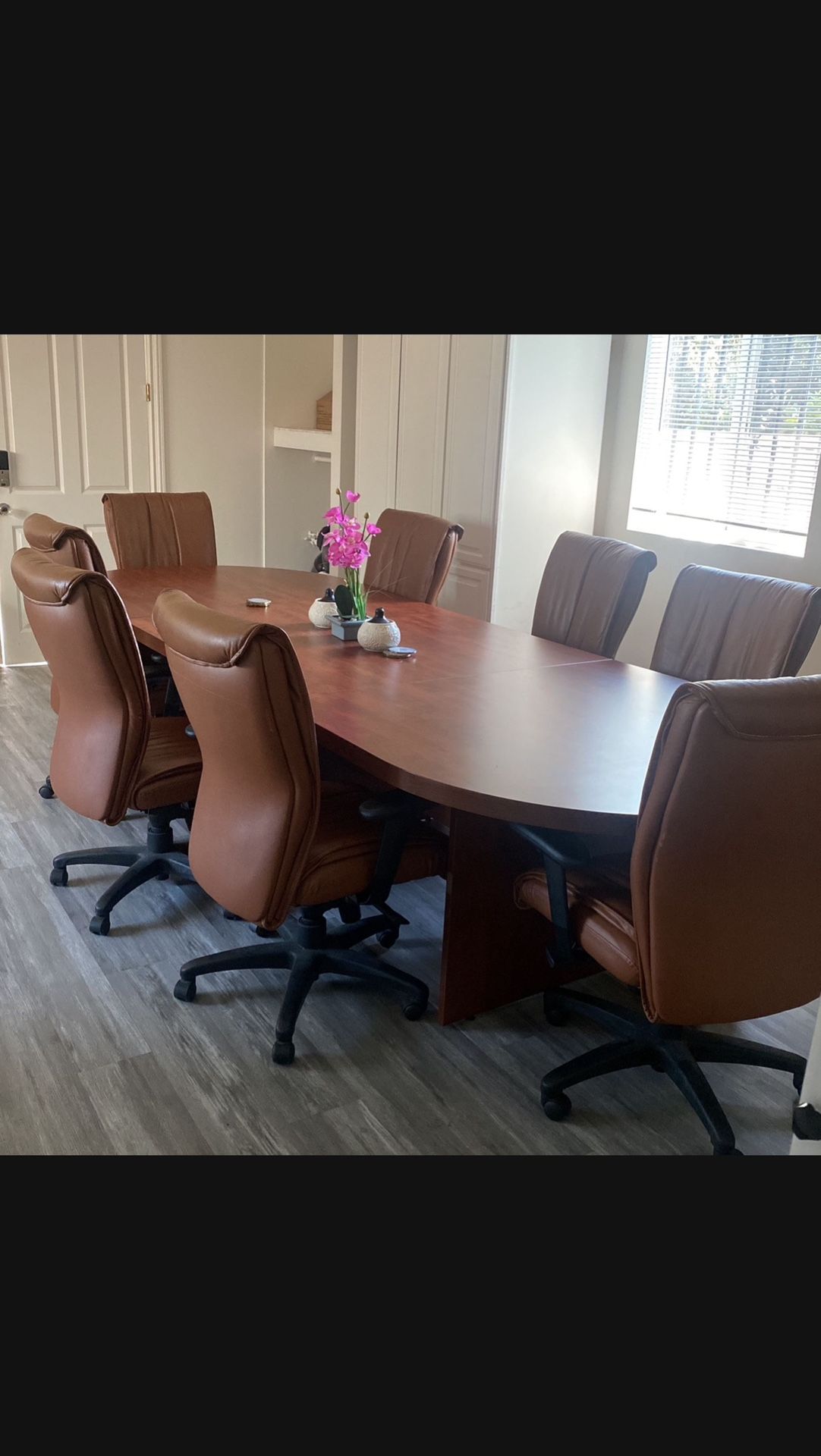 8 Executive Chairs Large 3 pc table With center opening for running cables Used normal wear / very good conditions ***DELIVERY AVAILABLE FOR ADDITIONAL $250 LA, OC, IE **FREE Local delivery ONLY in these cities: Bell Gardens, Downey, Commerce, Pico Rivera, Paramount, Whittier, Vernon, Bell, Huntington Park, Santa Fe Springs, Maywood, Compton, Lynwood.