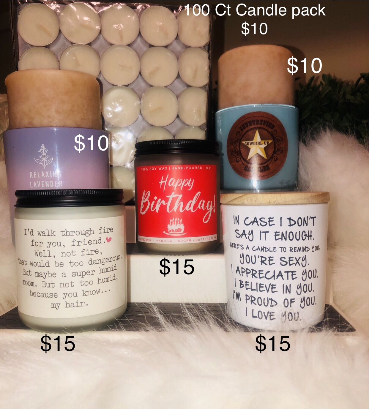 CANDLES For Funny & Special Occasions & 100 Ct Tea candles PRICES range from $10 & Up