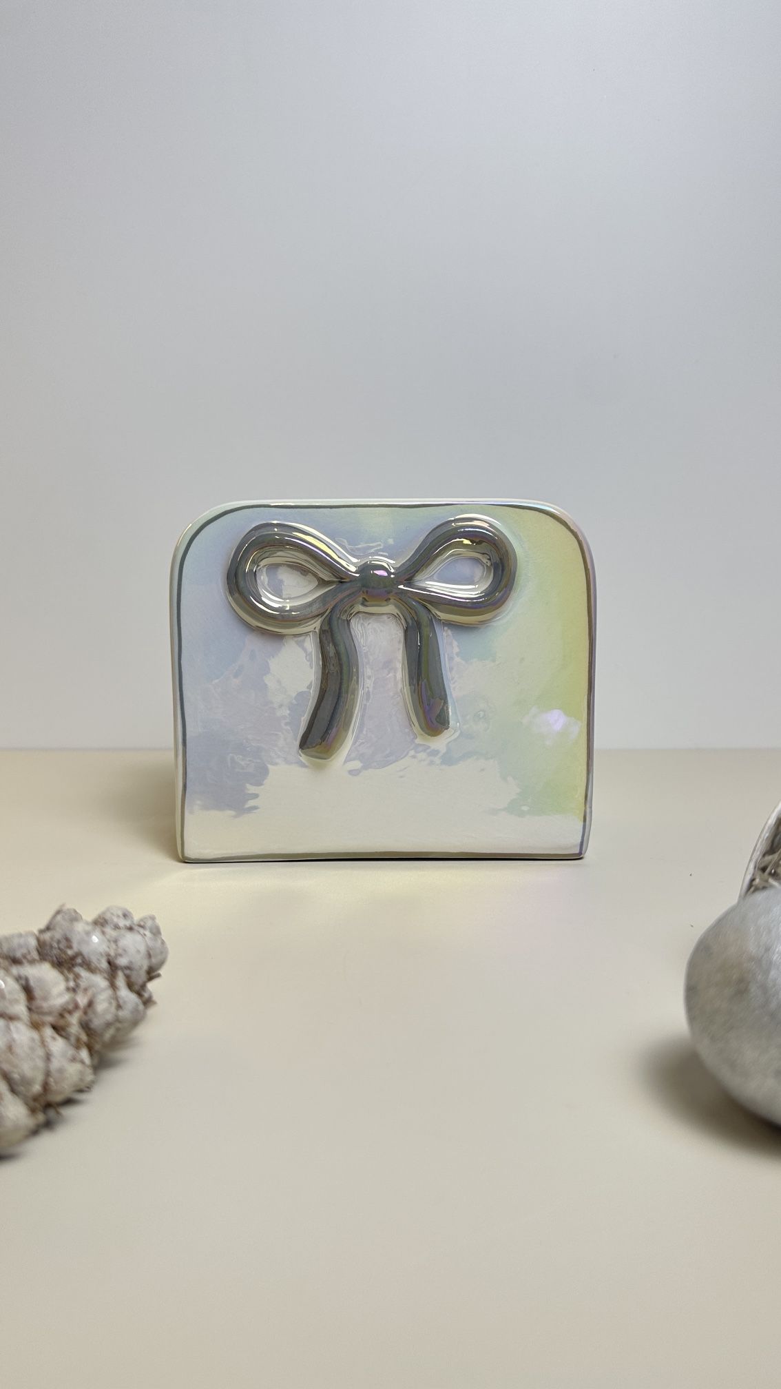 BRAND NEW! never used! Super cute Napkin Holder with Bow 6x5x2.5" gap 1" weight: 1.6 lbs Ceramic