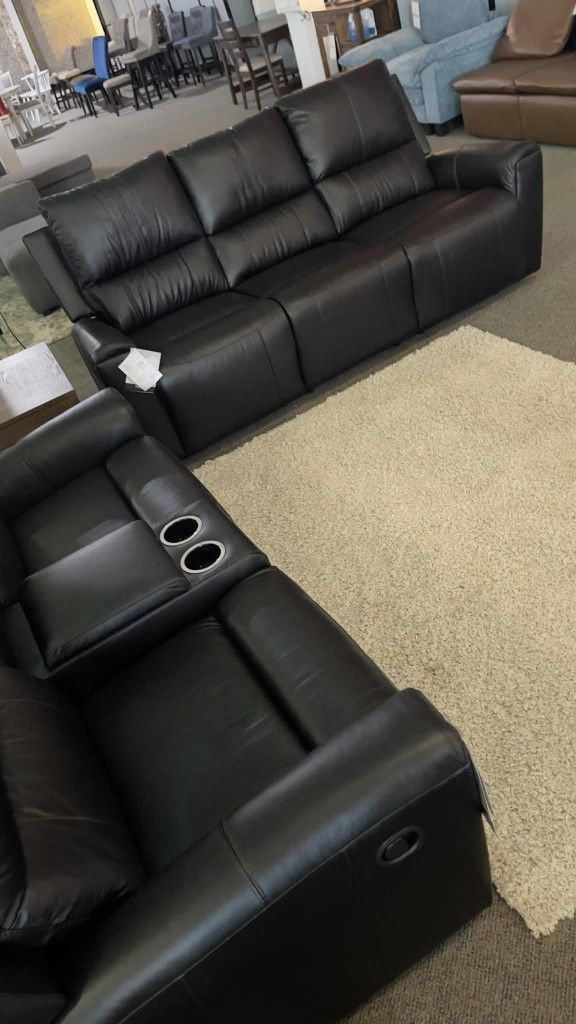Genuine Leather Black Color Sofa And Loveseat Set Take Home Pay Later Only $39 Down Payment 🌟