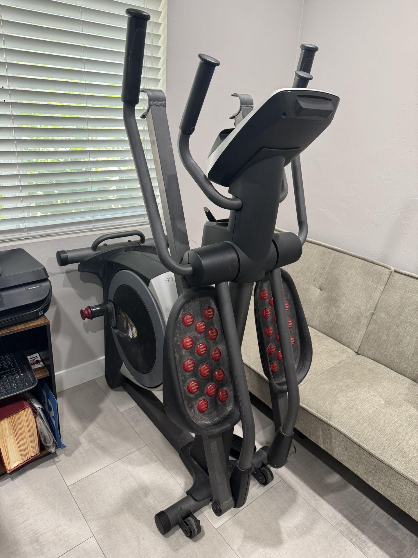 Pro Form Elliptical, works with typical wear. I need more space is the reason I am giving it up. Please don’t ask for measurements or model number it’s in the pics. It works good.