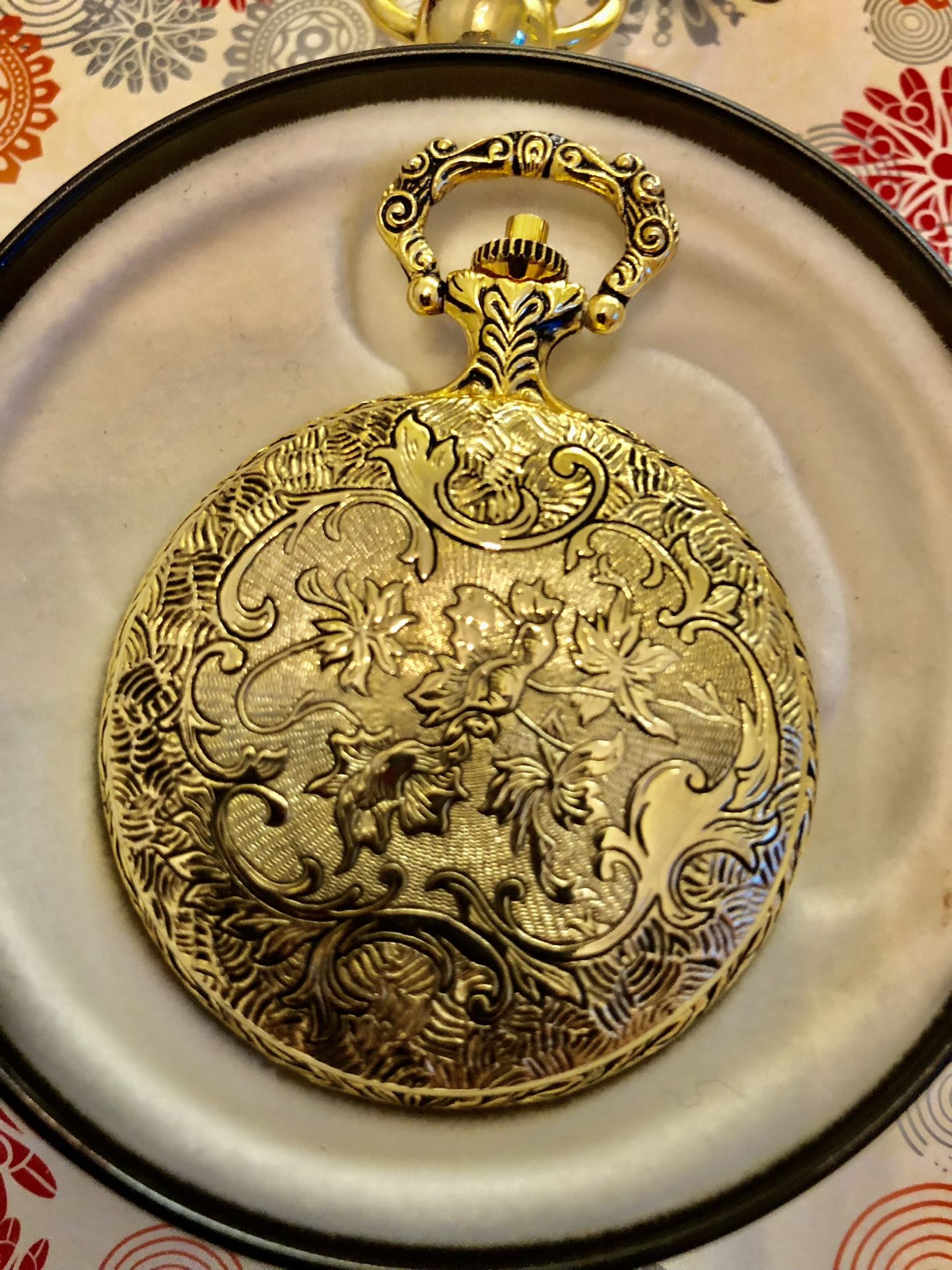 Beautiful Disney Mikey Mouse Gold pocket watch in used like new condition. Comes with original box.