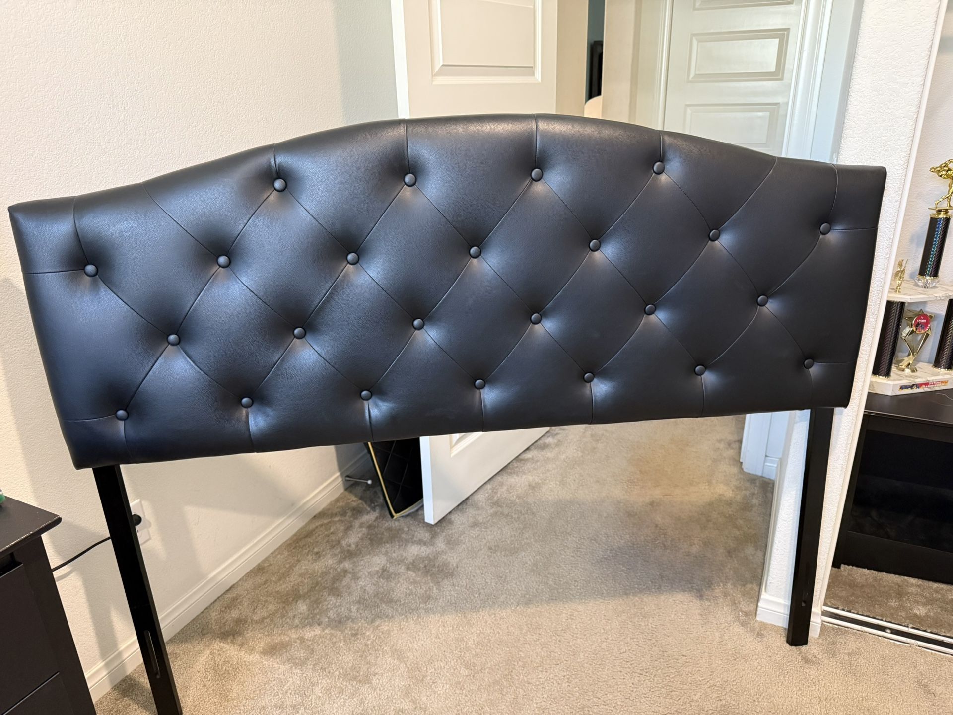 Baxton Studio Myra Modern and Contemporary Queen Size Black Faux Leather Upholstered Button-Tufted Scalloped Headboard. Great condition. No rips or tears.