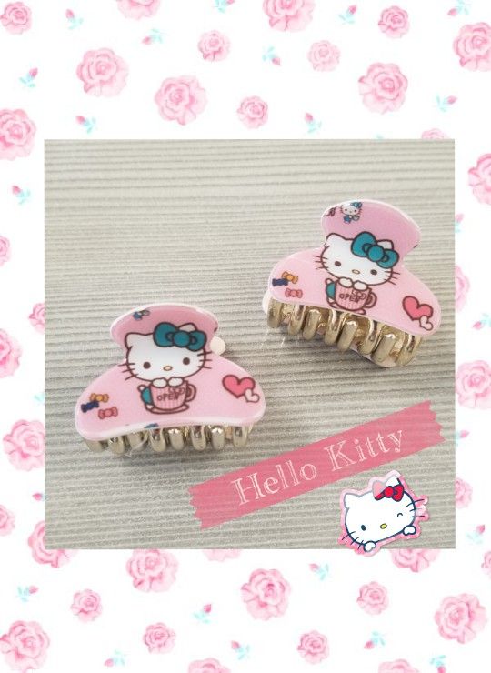 Super Cute 1 pair Hello Kitty Light Pink Fashion Hair Clip with design logo. Gold Metallic clips Buy 2 sets for 2 for 20 3 for 35 I will bundel for you with special price
