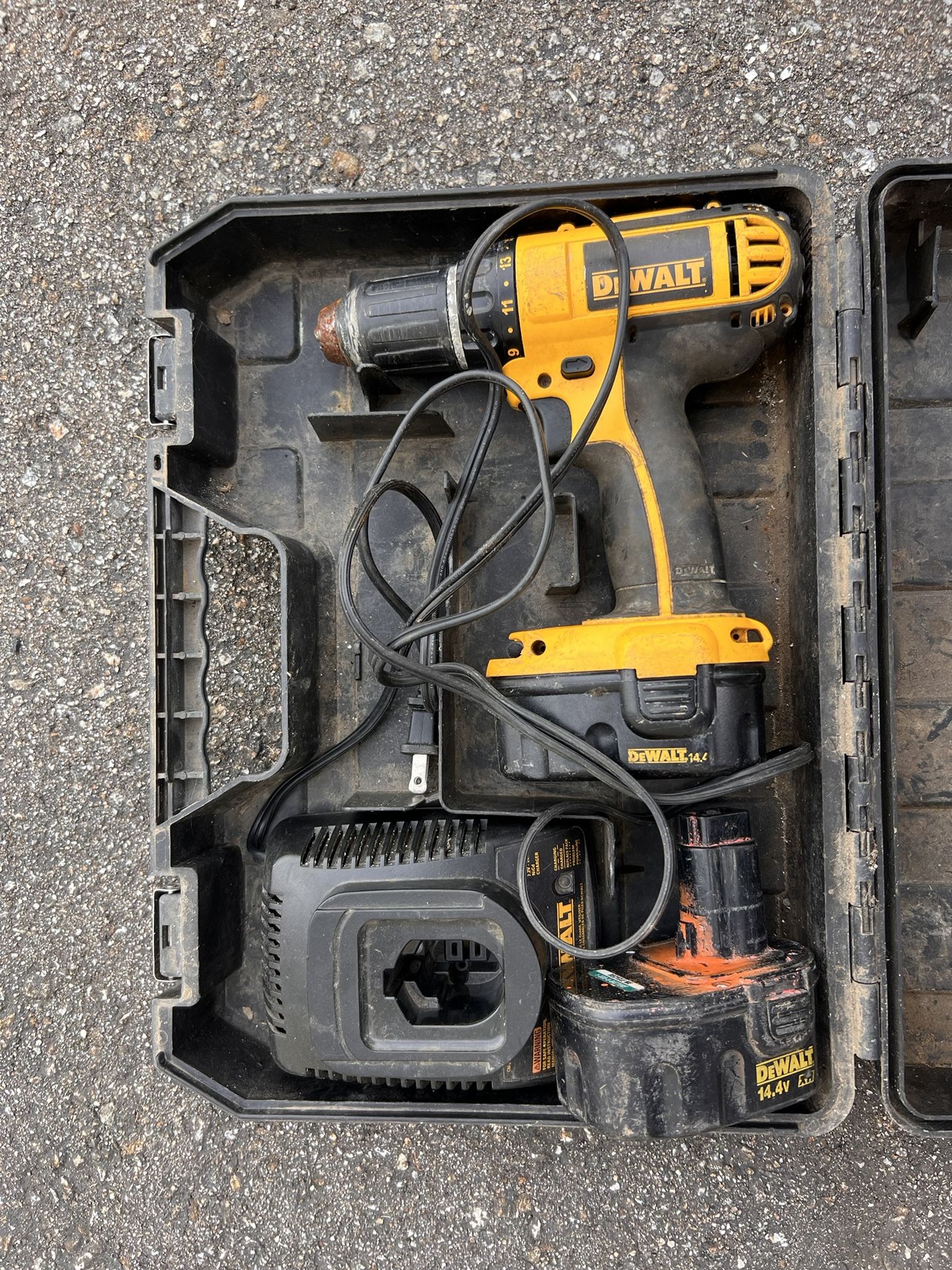 Dewalt Drill, Battery, Charger and Case . Drill has rust but works fine.