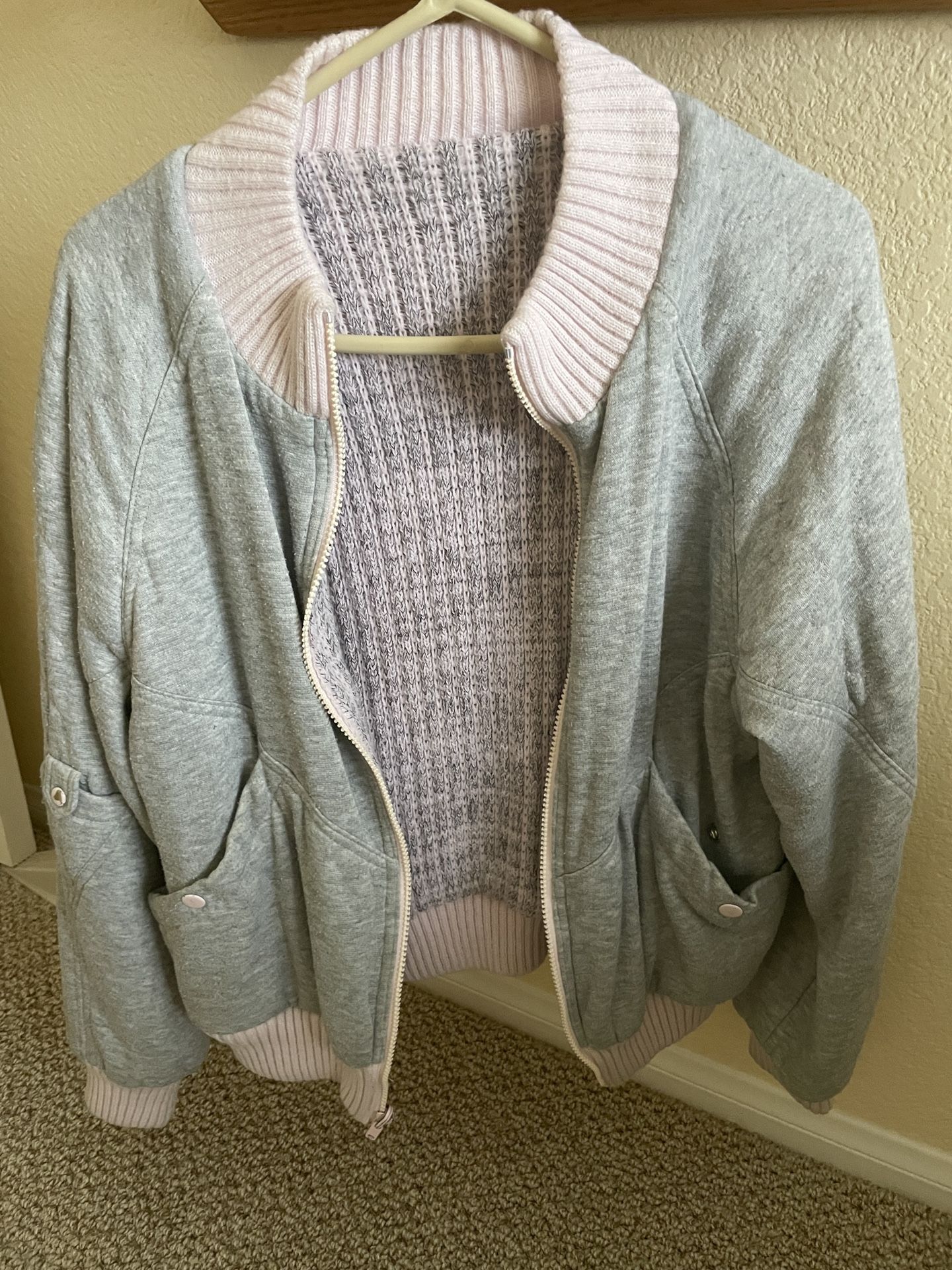 Women’s reversible fabric jacket in good condition. Pockets inside and out. Size M. $10