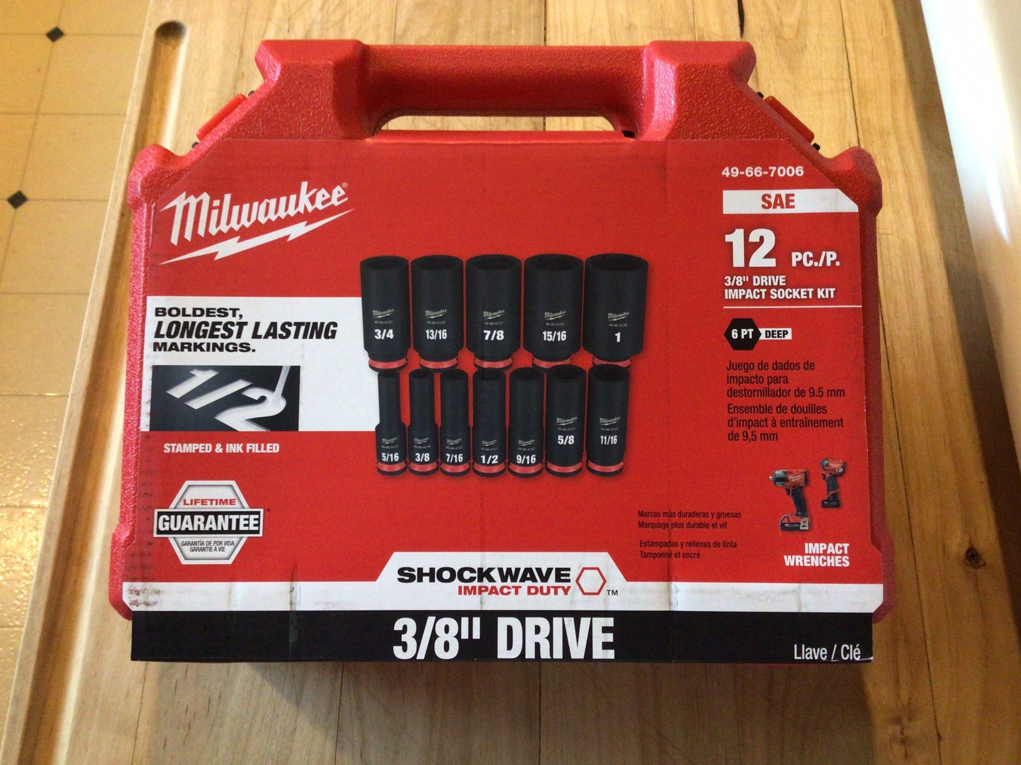 Milwaukee SHOCKWAVE 3/8” Drive Deep Well 6 Point Impact Socket Set SAE (12-Piece).