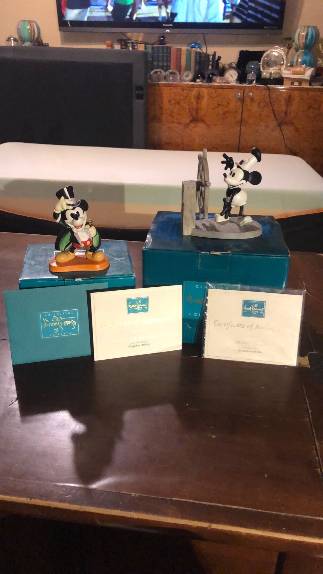 Magician ,Mickey “On with the show 1997 membership sculpture , Mickey’s debut . Steamboat Willie