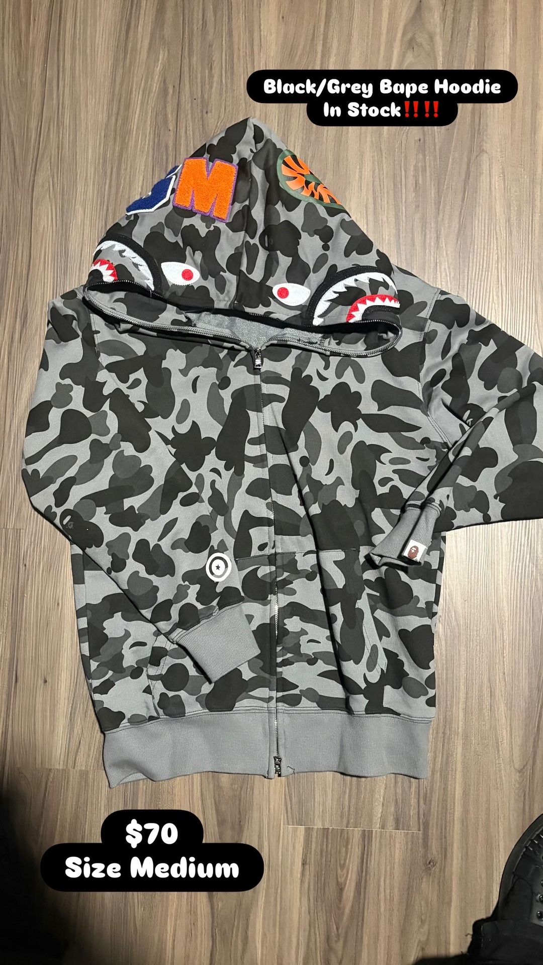 1:1 Black Bape Zip Up Size Medium