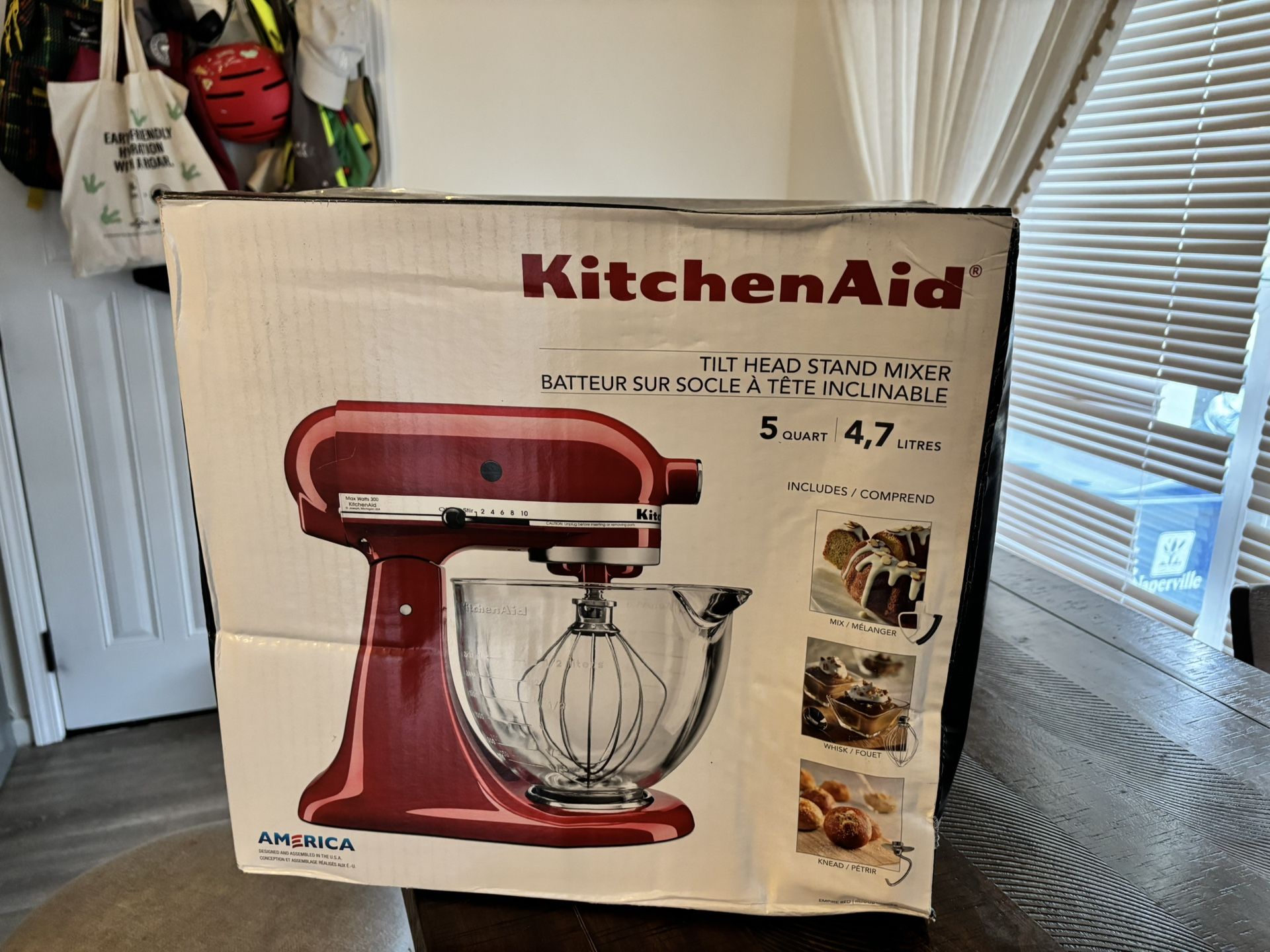 KitchenAid Tilt Head Mixer 5 Quart/ 4.7 Litres bought this from a secondhand store for decent price but has no used for it never opened and used until for Facebook sale pictures. Nothing ever been take out of the box. Price can be negotiable for a little not much. In person transaction with Cash Only