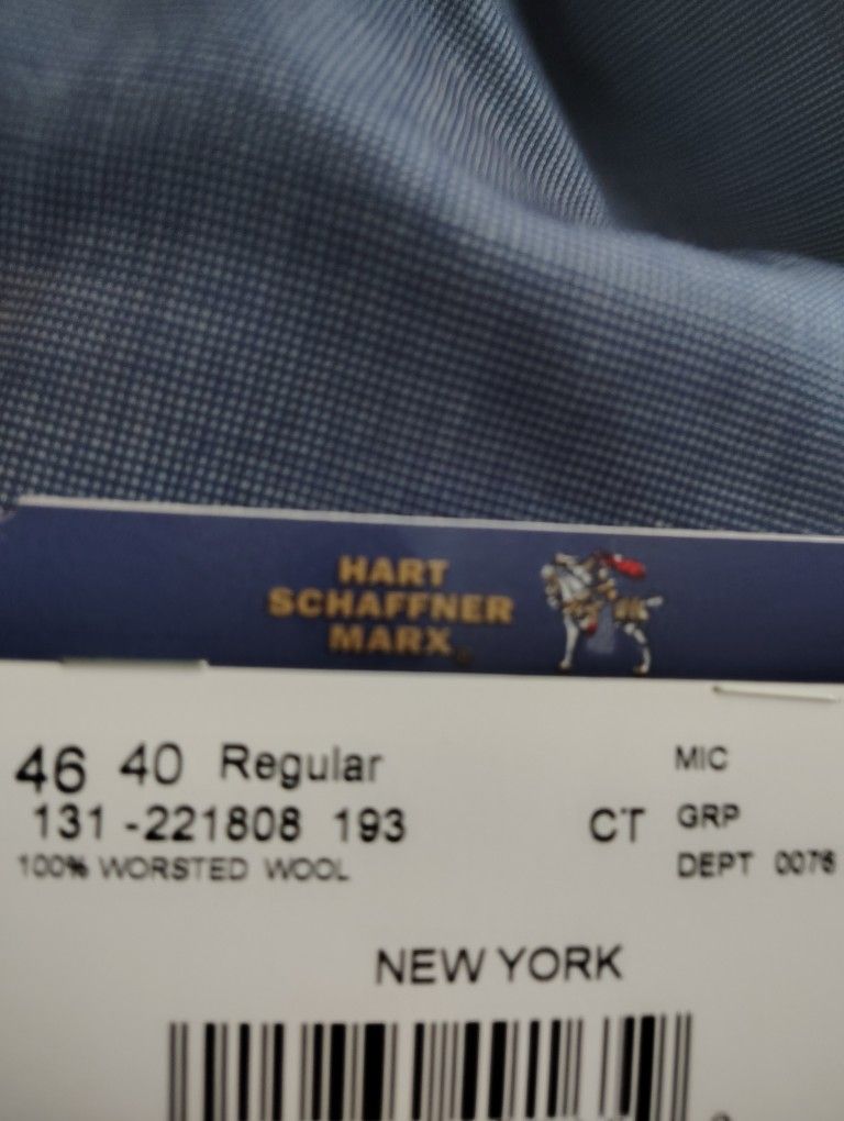 This suit has never been worn and has all the original tags . It has never been taylored tag shows size . Been in a box covered . Brand new in perfect condition. Needs to be taylored (the slacks ) and pressed. This suit retails $900