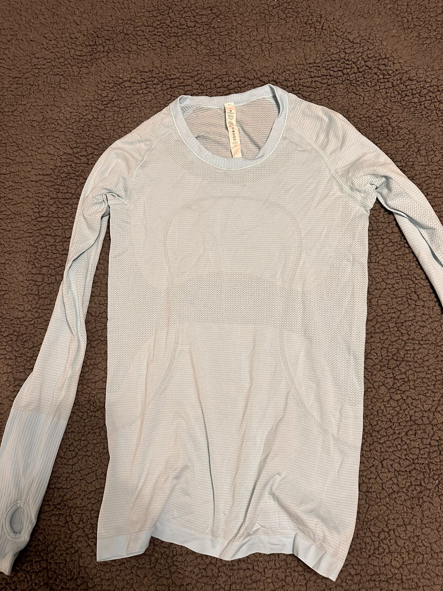 Beautiful baby blue workout top Amazing condition only worn a few times Size 8 Lululemon !!!