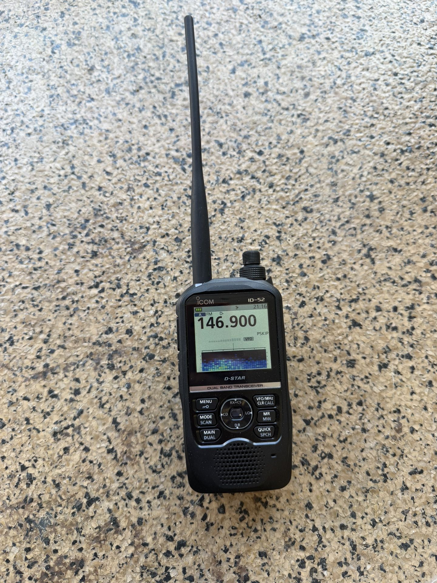 Icom id52 a ham radio. Almost brand new. Bought it and maybe used it 1 time. Comes complete with original box and accessories including owners manuals. I paid $800 brand new.