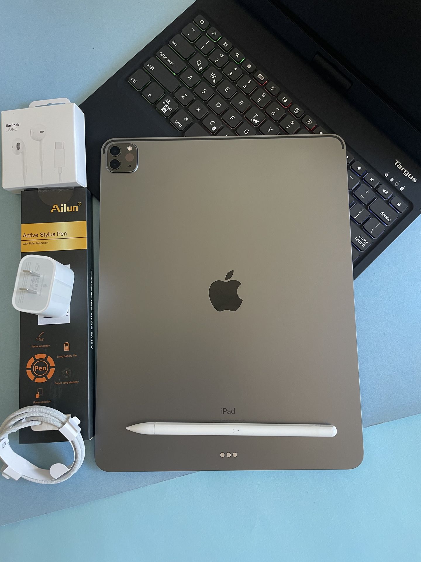 Apple IPad Pro 12.9” 5th Generation (M1 chip/ Face ID/2021) 128GB with pen, keyboard & Accessories