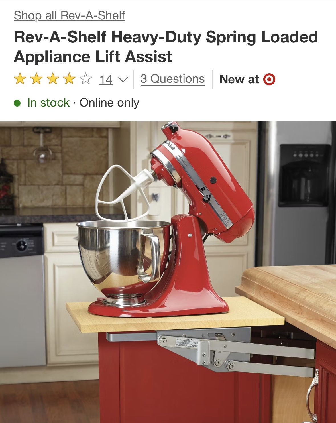 Brand new, never installed. Heavy-duty Rev-A-Shelf mixer/appliance lift with soft-close. Hardware only. Fits base cabinets and supports large stand mixers (KitchenAid, etc.). Includes all hardware and instructions. Asking $185 OBO