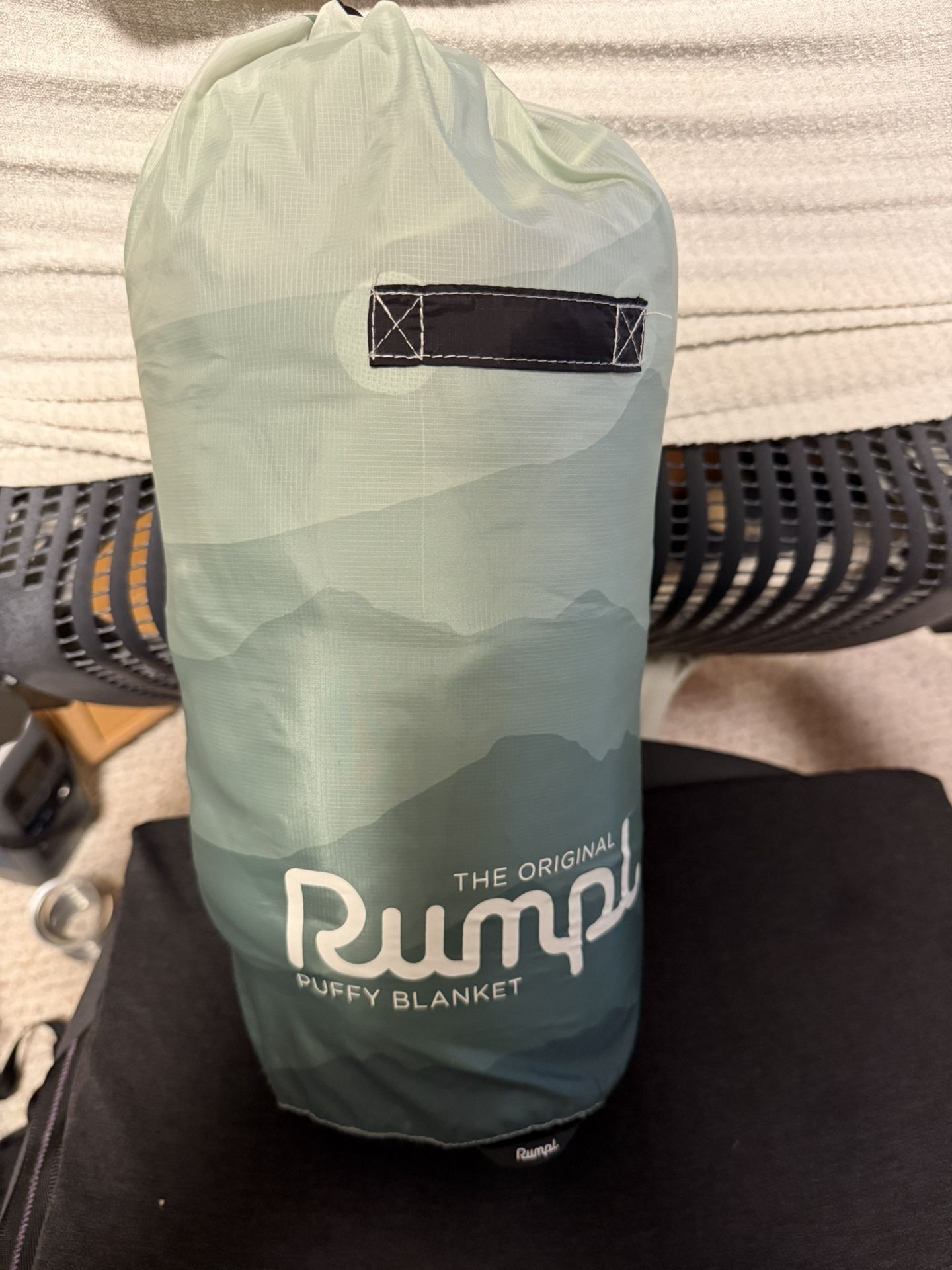 The original Rumpl puffy blanket. Only used a few times. No smoke/Pet Great for camping, lounging, sleeping bag alternatives, beach, park, hiking, picnic Can pickup either Shoreline/Aurora Costco or Southcenter REI parking lot.