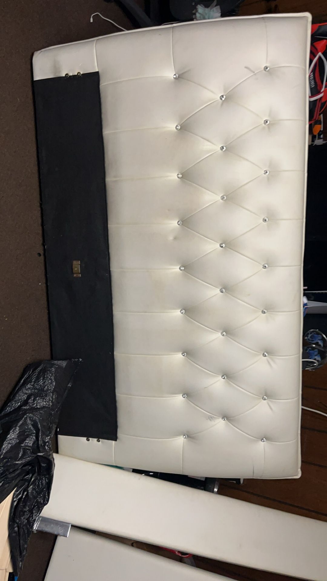 Used white bed frame. Has been sitting in storage, will need to be cleaned. $40FCFS