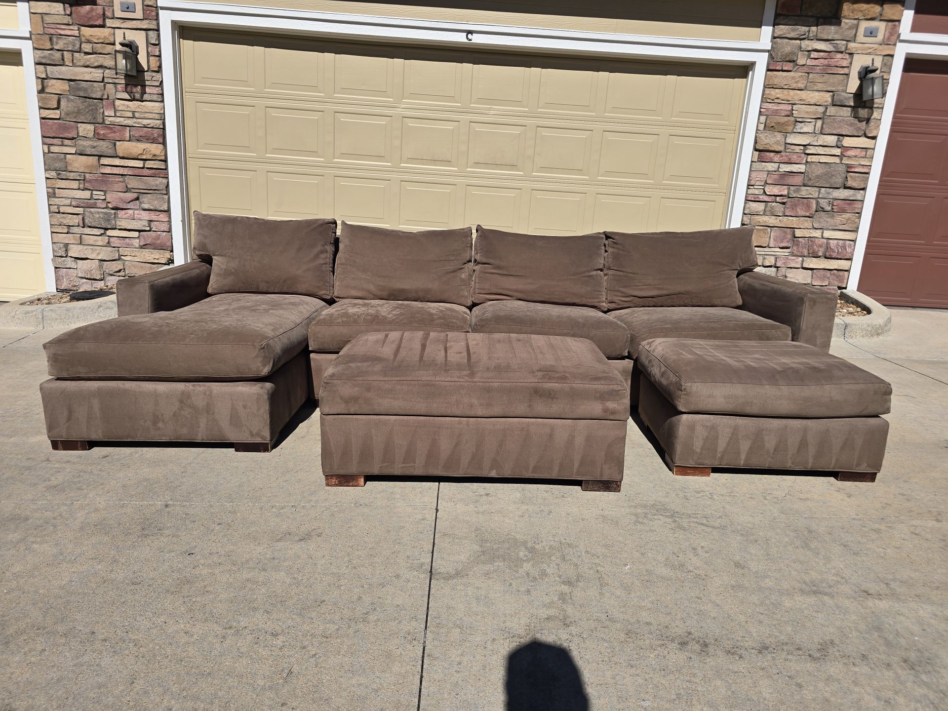 Brown Crate & Barrel Sectional Sofa W/ 2 Ottomans- Delivery Available