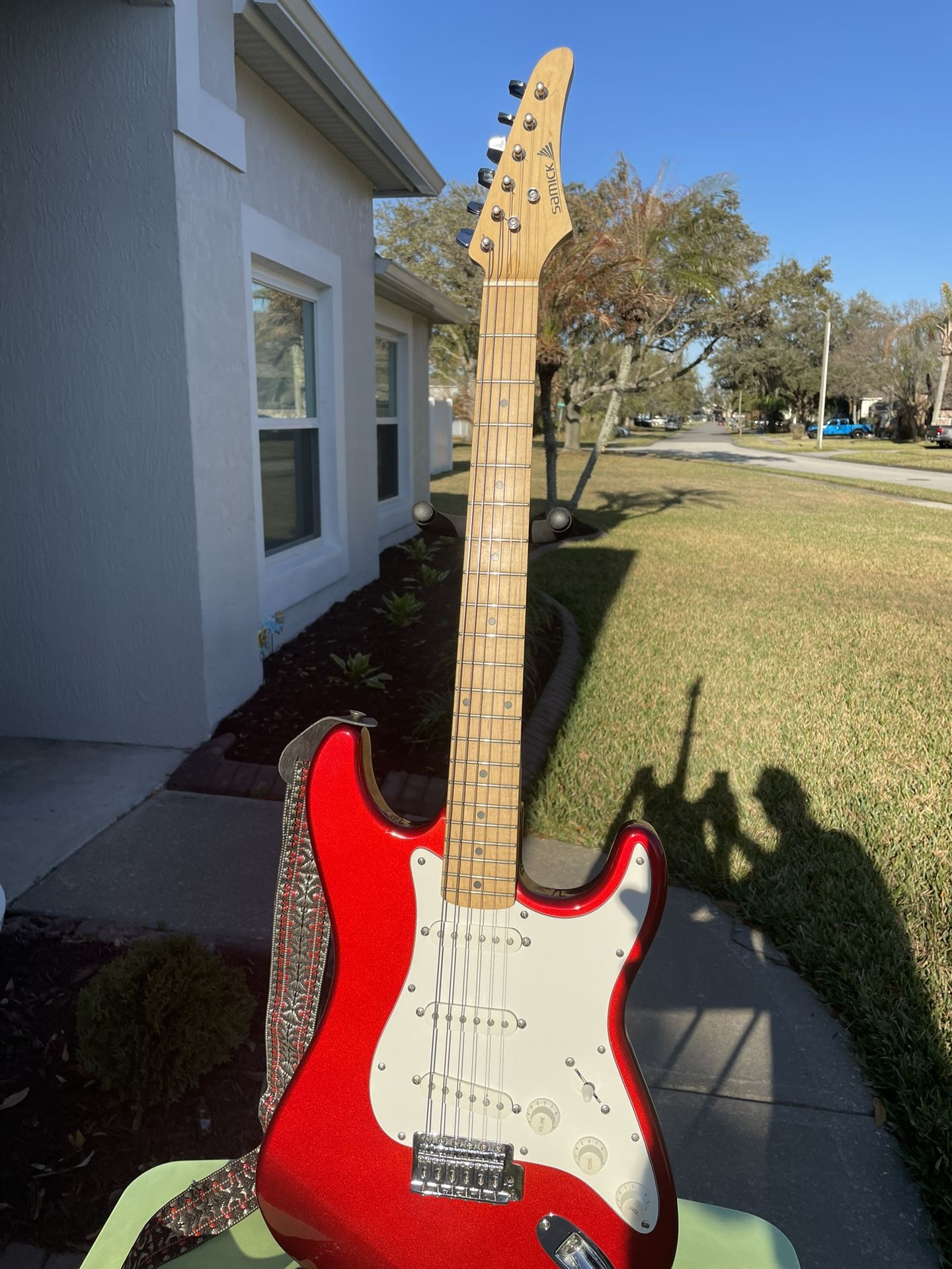 $125 OBO. Beautiful Candy Apple Red Samick electric guitar. Like new, sounds and plays great. Grab it before it’s gone!