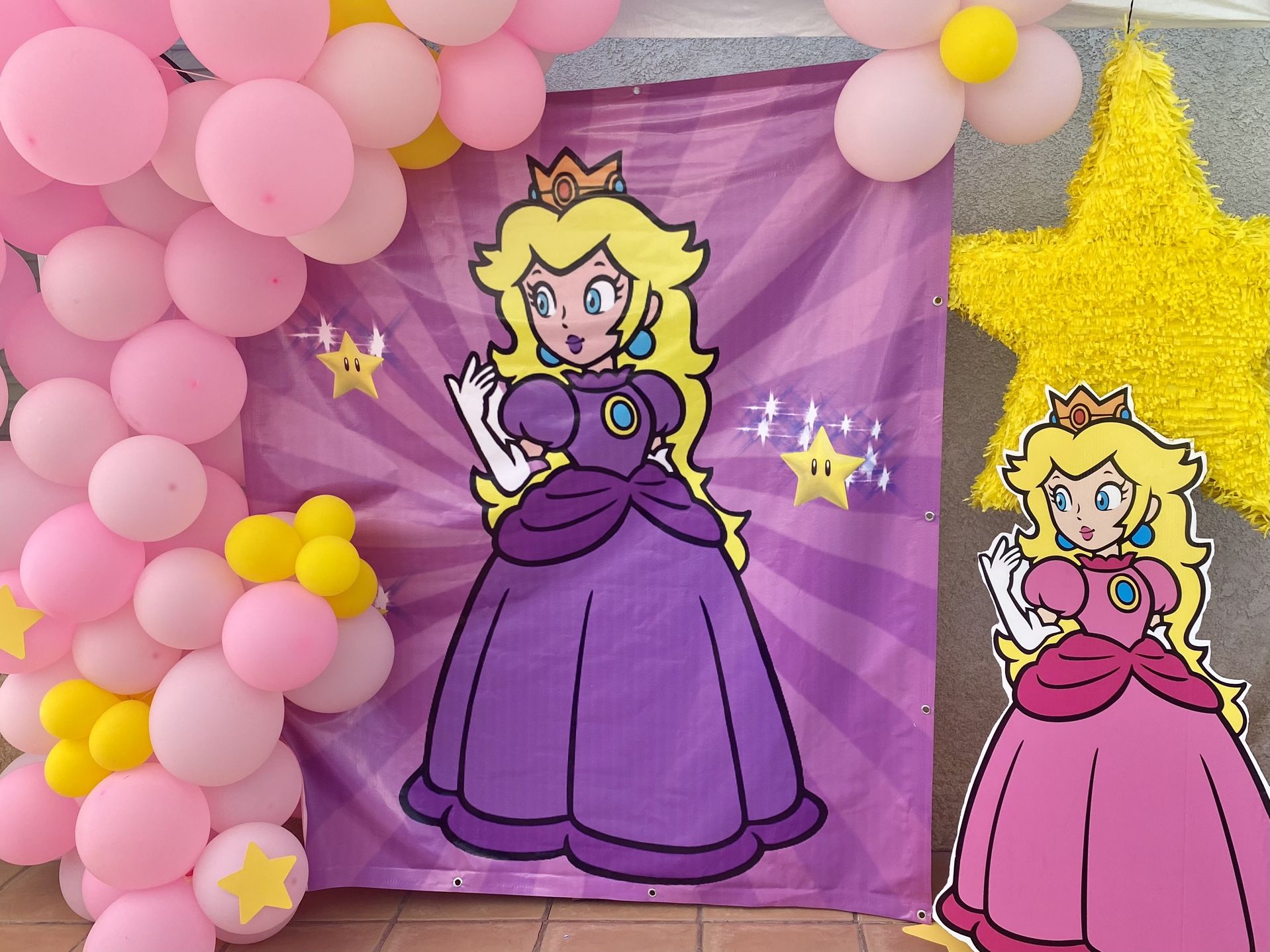 Only items listed are for sale: • Princess Peach Tarp 5x7 •Princess Peach Standup Doll •11 Centerpieces. *the last pictures are examples of my decorations on tables.