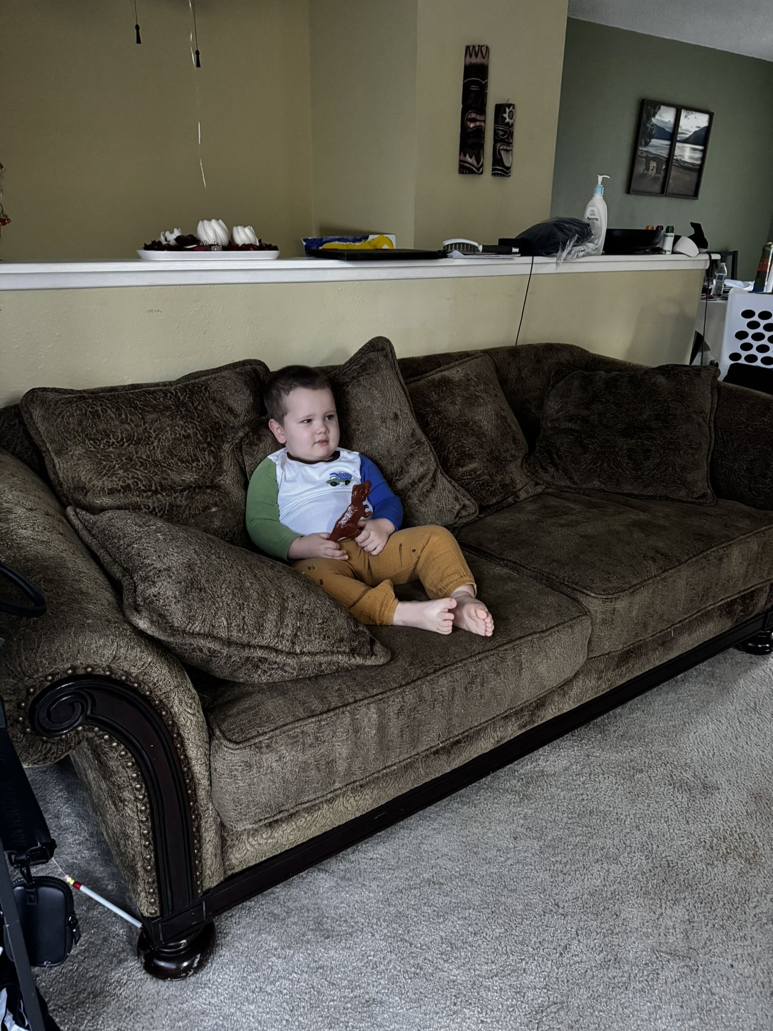 Comfortable sofa with a wide seat, perfect for relaxing and feeling cozy. From a smoke-free and pet-free home.