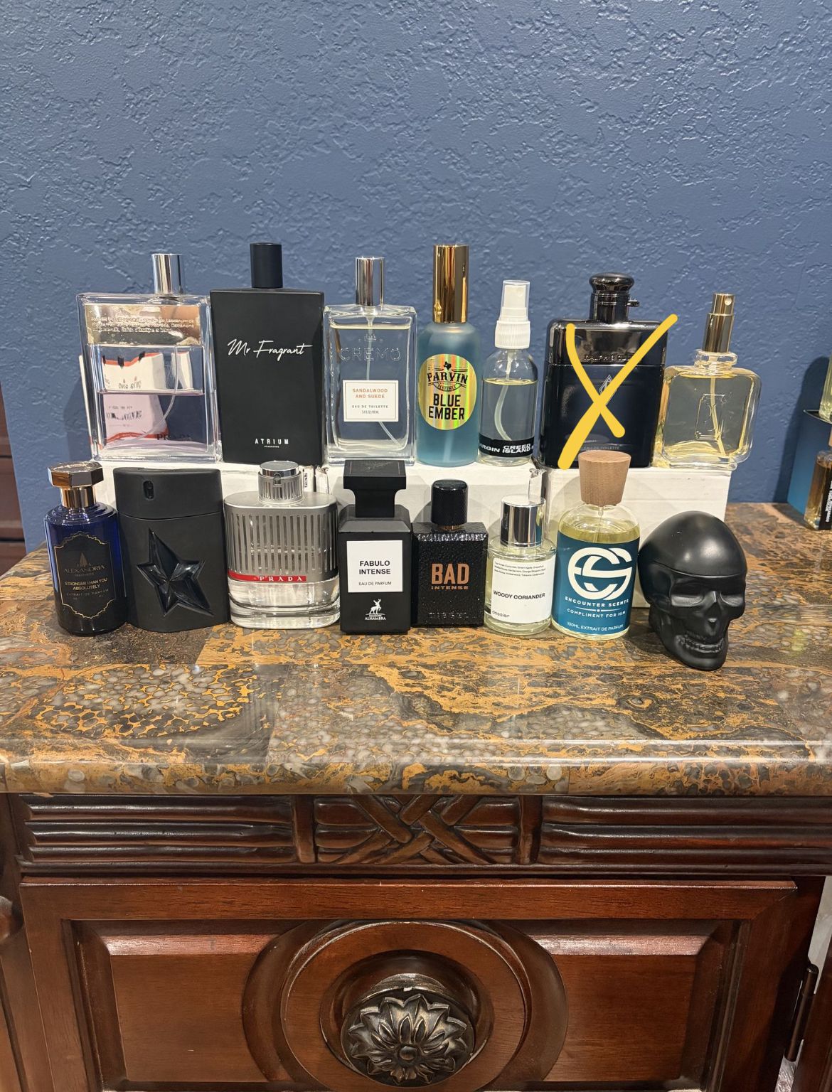 Still doing a draw down from my collection Any questions please feel free to ask. Thank you. 1. Prada Amber pour homme 2. School of scents Mr. fragrant 3. Cremo sandalwood and suede 4. Parvin blue Ember 5. Creed virgin island water inspiration 6. Alexandria fragrances stronger than you absolutely 7. Thiery Mugler A MEN 8. Prada Luna Rosa 9. Maison Alhambra Fabulo intense 10. Diesel bad intense 11. Dossier Woody coriander 12. Dua Complement for him 13. Ralph’s club EDT. 14. Paul Sebastian fine Cologne. 15. Ed Hardy skull and roses.