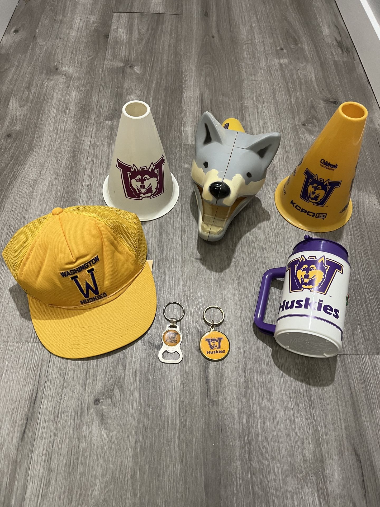 Vintage UW Huskies Lot 80’s Cones, Mug, Hat, Keychains Comes with everything in the photos. Pick up in mill creek. cash only.