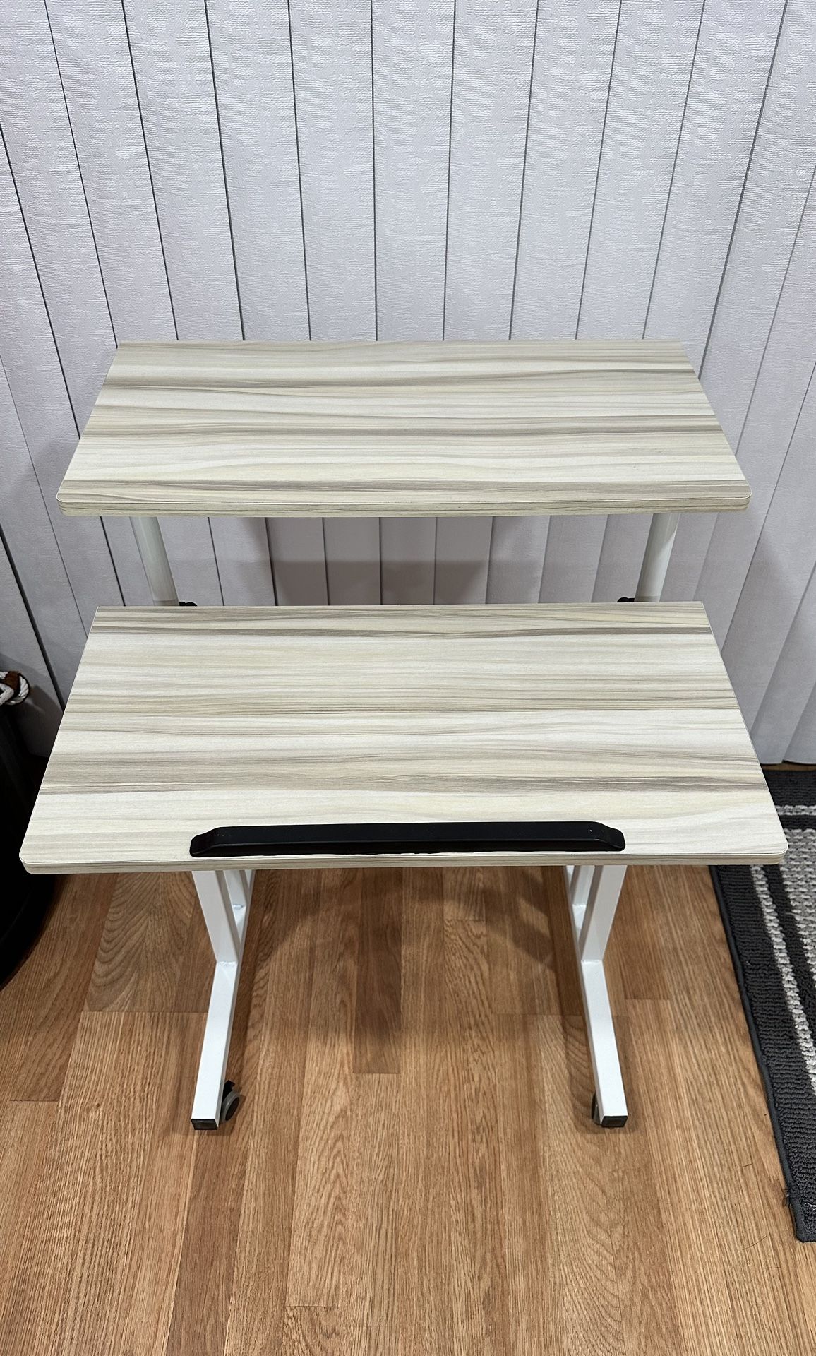 Desk is almost new used it for about a month, it was two small for my two screens so can’t use it. Got it at Amazon, I’m open to offers . You are able to raise it for standing use