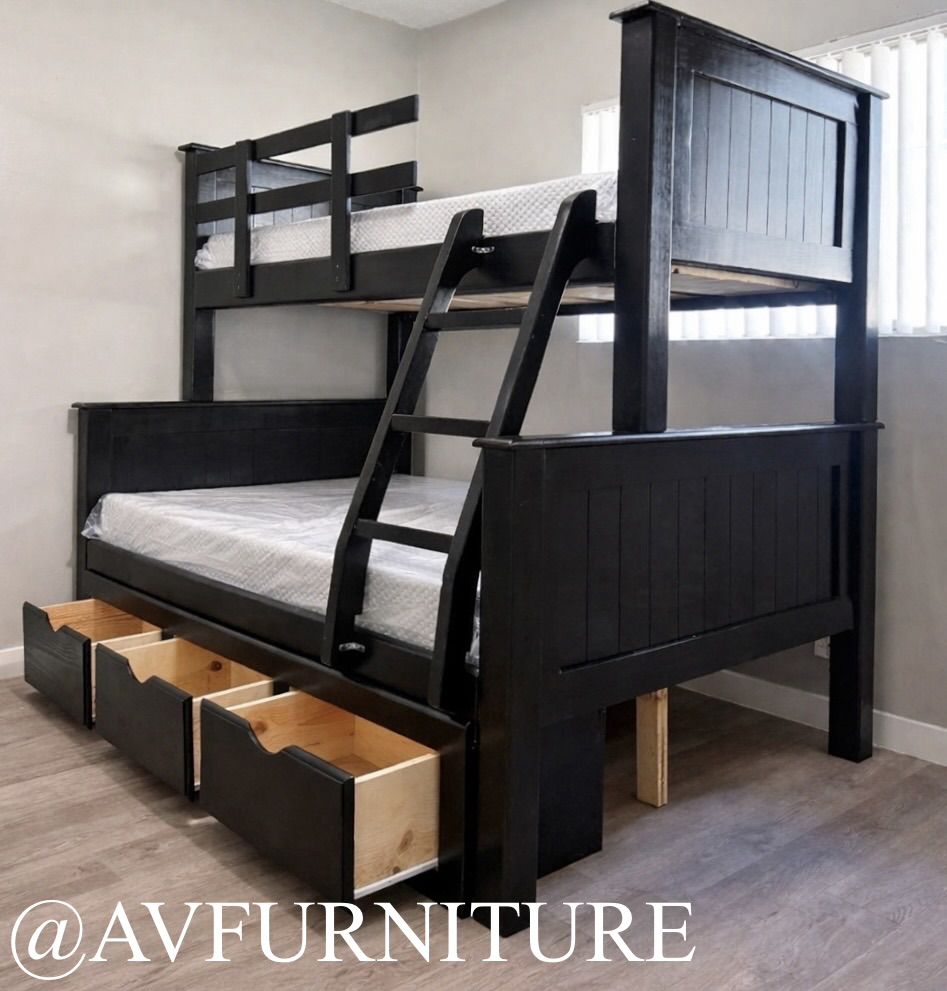 Solid Wood Full Twin Bunk Bed w Drawers and Mmory Foam Mattresses