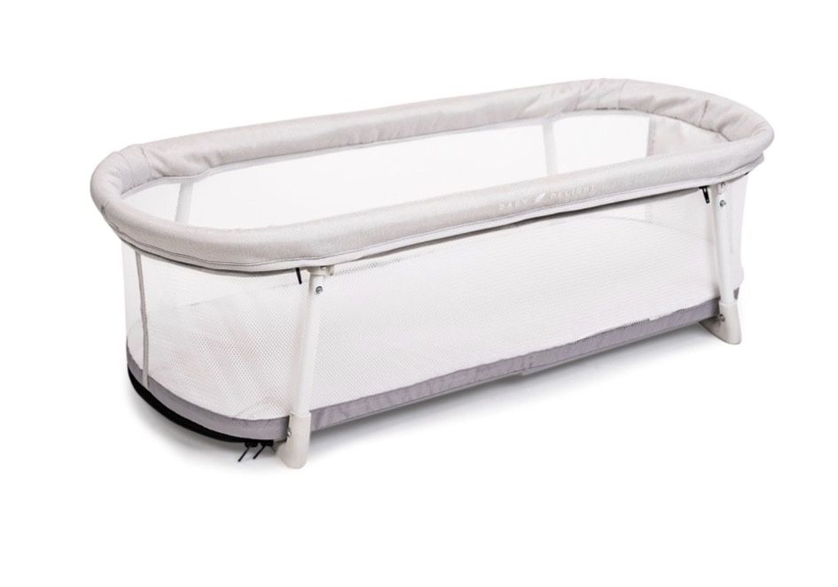 New Baby Delight Snuggle Nest Bassinet, Portable Baby Bed, for Infants 0 – 5 Months, Driftwood Grey with sheets