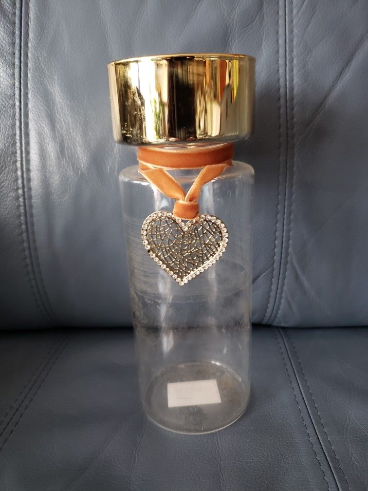Buy flowers and put them in this romantic vase with a heart. (missing 1 rhinestone [see photo]) 9"H x 3" Diameter