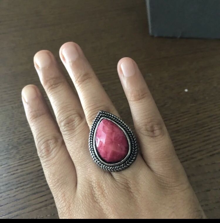 In excellent like new condition Gorgeous big pink stone ring with oxidized silver border Adjustable banf Slight oxidation on the band Message if you would like to purchase multiple items from my store