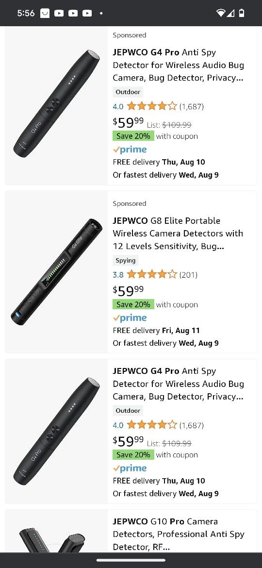 This jepwco can detect all kinds of items such as car trackers, mobile phones, underage cover software wireless pinhole cameras. Wired cameras, surveillance cameras, casino fraud devices electrical radiation sources and other products. It is brand new in the box asking$50