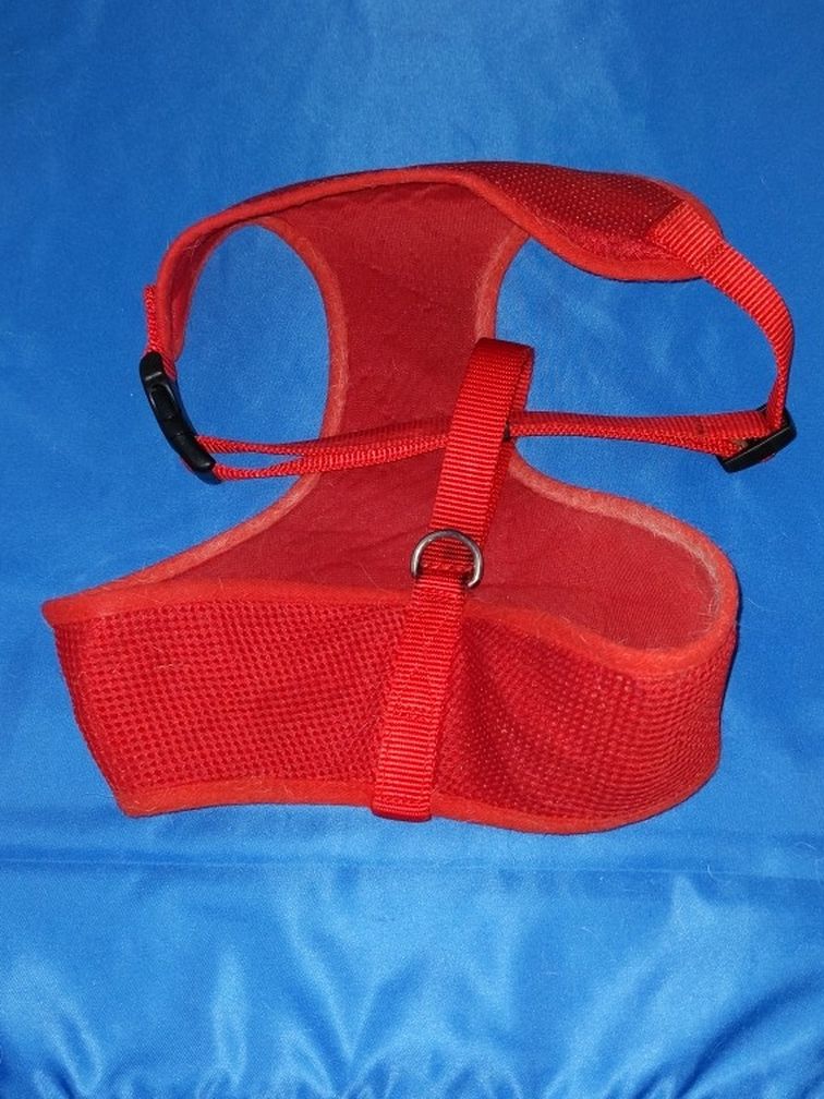 Small/Medium red dog harness... There is padding on the inside of the harness for additional comfort while walking.