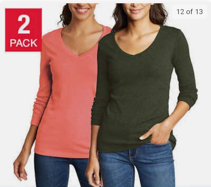 Eddie Bauer Ladies Long Sleeve V Neck Shirt 2pack