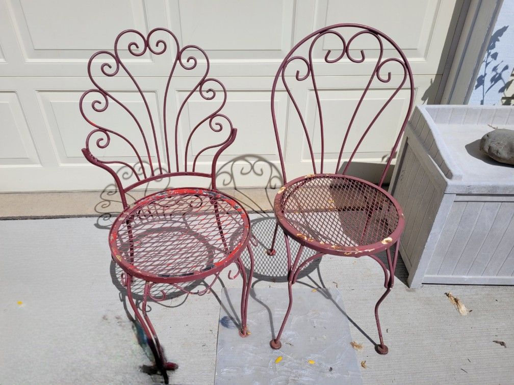 Pair Of Vintage Wrought Iron Bistro Chairs