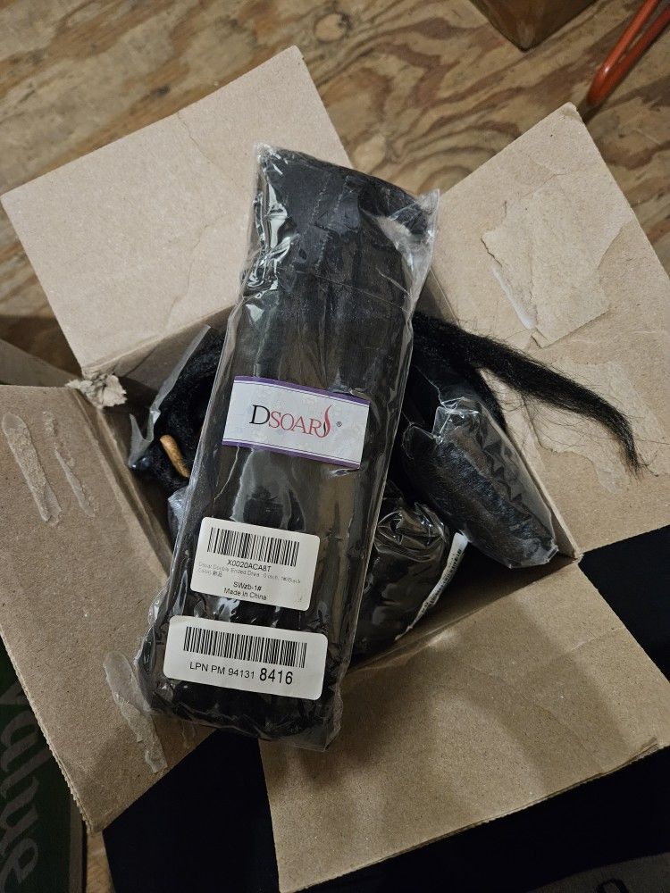 Dread extentions tie in plus accessories like colored feathers, ties, new makeup brushes, ect.