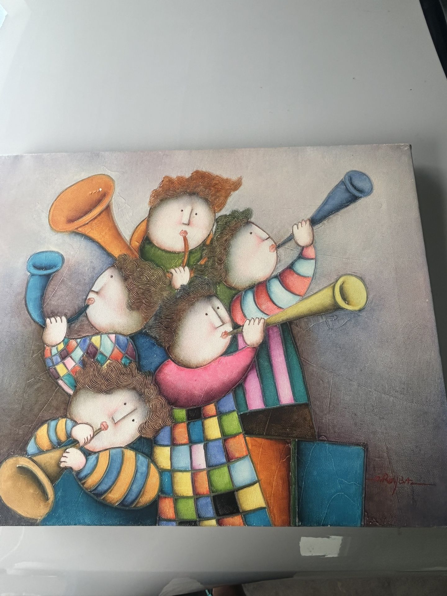 Three canvas based with wood framed 20x 16 in Four canvas based with wood frame 24 x 20 in By Artist Roy Baz oil on canvas paintings all signed