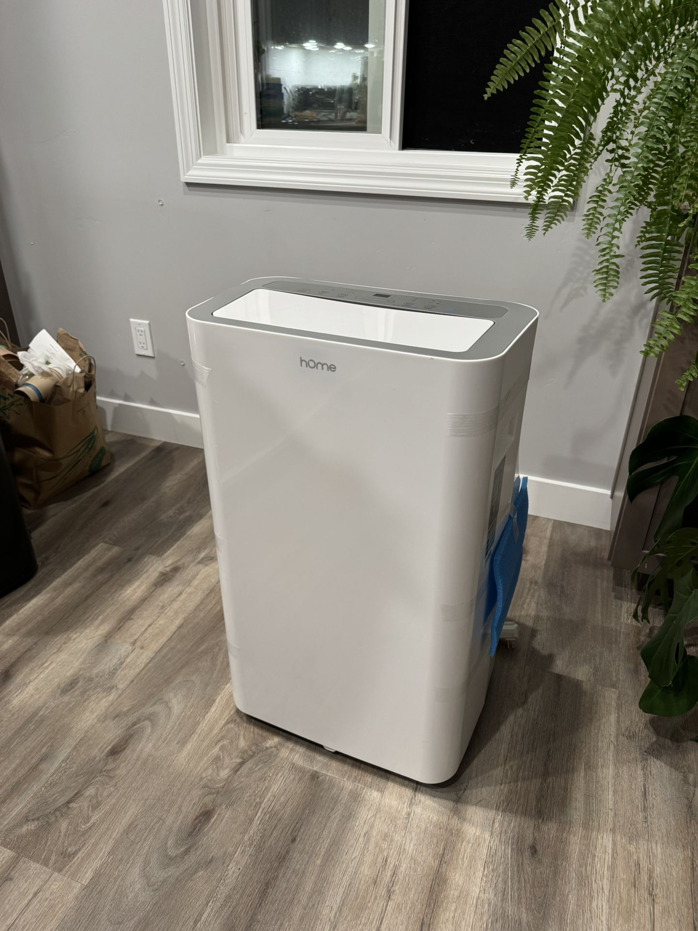Powerful and quiet hOmeLabs portable air conditioner (model HME020379N). Great for bedrooms, apartments, or home offices. • 12,000 BTU (7,200 DOE) — cools rooms up to 450 sq ft • Includes remote, vent hose, and window kit • Features cool, fan, and dehumidify modes • Easy to move on wheels + washable filter Clean, fully working, only used for one summ