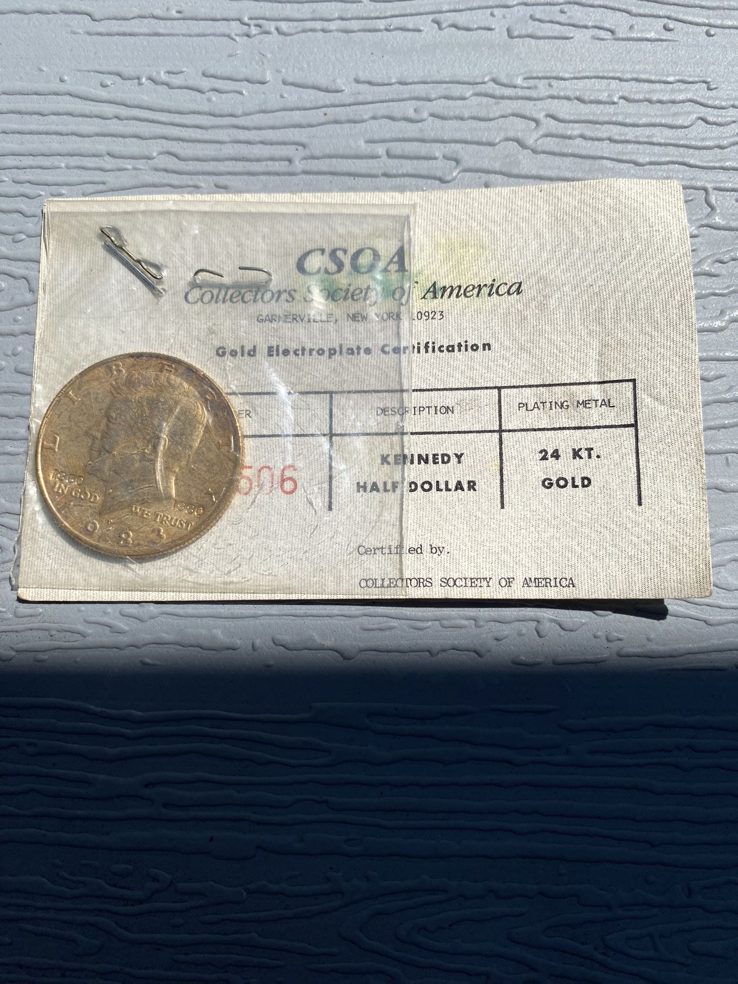 Here is a 1983 gold plated Kennedy half dollar for sale. Mint condition, never handled.