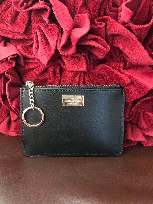 Authentic Kate Spade BITSY ARBOUR HILL KEY CHAIN COIN PURSE Arbour Hill Collection WLRU2652 Color: Black Leather With Gold Hardware Gold linked Key Chain attached 4 credit slots, 1 outside space Zipped Top Closure interior coin space FAST SHIPPING! Comes from smoke free home!