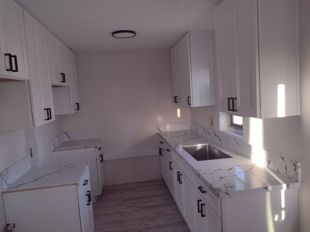 Sink faucet stone and cabinets