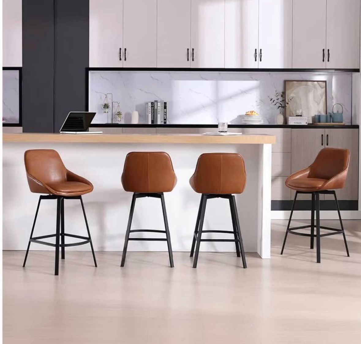 4 NEW Brown Leather Counter Stools