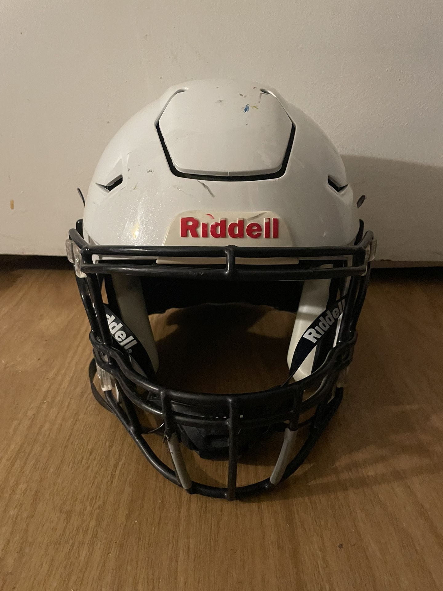 Clean, classic white Riddell SpeedFlex football helmet in great condition. Known for its advanced impact protection and flexible shell design, the SpeedFlex is one of the most popular helmets in football. Features a modern look, comfortable padding, and a secure fit—perfect for players, collectors, or display. Ideal for practice or game-day use. only used in practice 3 times