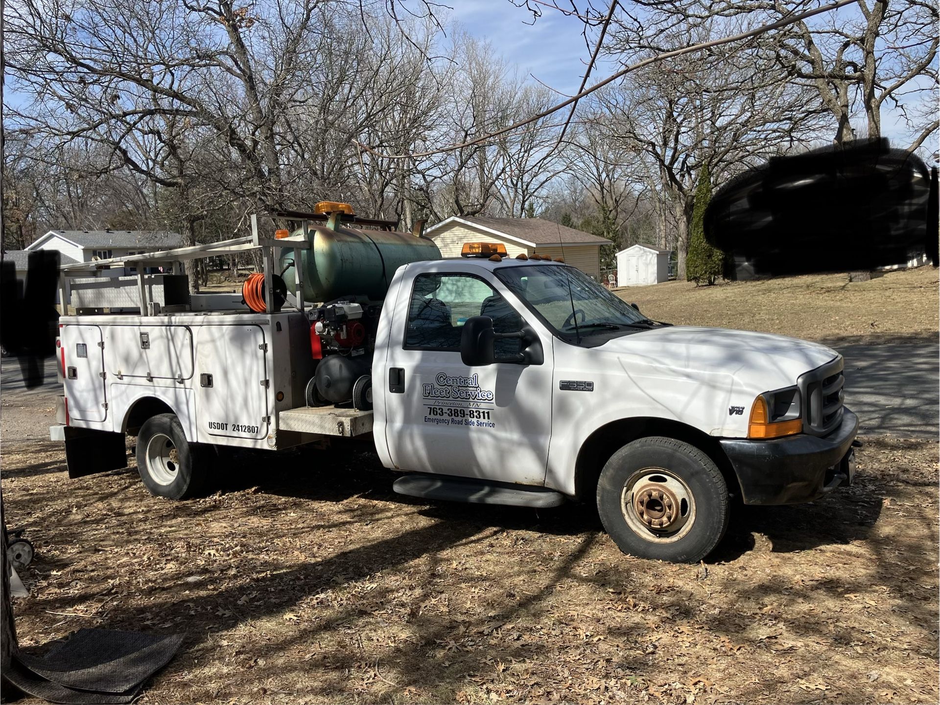 2001 Ford F350 Superduty Dually Utility Truck Triton V10 motor. 175,000 miles. Gas, automatic, 2wd. Will include 2 snow chains for tires as well. Featuring a light bar on top, a generator that starts on the first try, a Honda air compressor and a 200 gallon air holding tank that will let you run air tools all day long. 7 storage compartments equipped with hooks, bars, adjustable trays, locking drawers, straps to hold standing cylinder style tanks, a roll-back top for easy access to the large compartment at the rear of the box. You can add a bucket lift if you want. Heat and AC work great. Starts every time, even on the super cold winter mornings. $5795 Pick up in Zimmerman. I can send additional pictures, and short videos of the truck, generator and the air compressor starting up and running upon request.